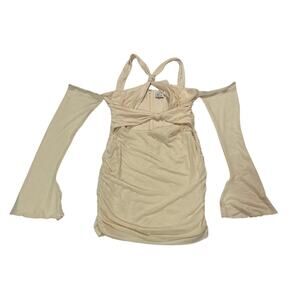 Oh Polly Women 14 Large Cut Out Sleeve Mini Dress Bodycon Ivory Party Going Out