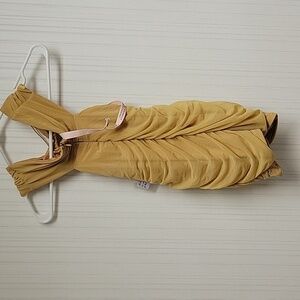 Oh Polly, women's Gold Ruched Mini Dress Sz 8. New With Tags. Nylon, Elastane