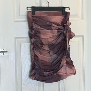 Oh Polly Blush Tie Wrap Front Ruched Mini Skirt Attached Brief Size 4
