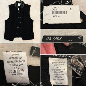 Oh Yes Black Sleeveless Chain Metallic Button Vest Womens L with Rhinestones