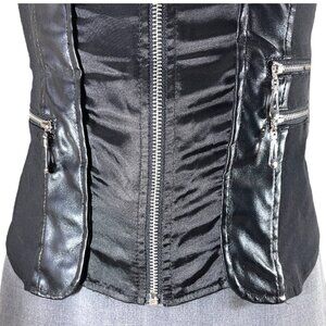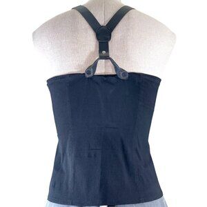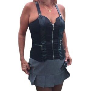 Oh Yes Suspender Back Zip Up Front Black Bustier Corset Top 3 zip pockets Size M
