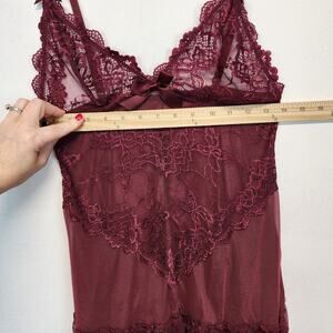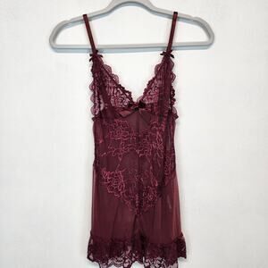 Oh la Cheri Babydoll Chemise Size M Unlined Lace Mesh Wireless Bow Deep Purple