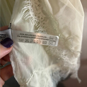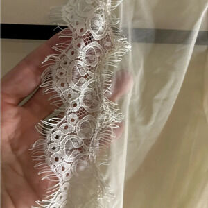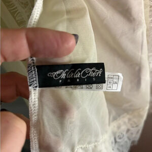 Alecon, eyelash lace trim on sheer robe with satin ribbon tie. SF/PF home.
