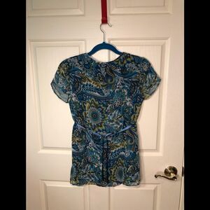 Oh Baby by Motherhood sheer blouse with solid underlay, peacock colors