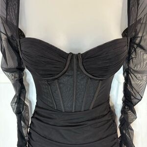 Oh Polly Corset Bodycon Mesh Sleeve Dress