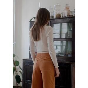 OhSevenDays Brown Copper High Waisted Pick Pocket Wide Leg Trousers. "The Pick Pocket Trousers are full-length wide-leg pants with a high rise and contrast stitch and feature an oversized belt button. Pair these with anything in your wardrobe!"