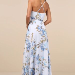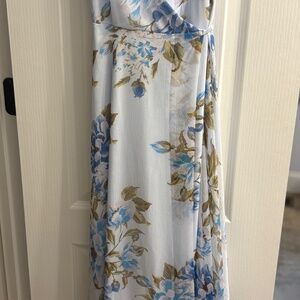 Oh-So Romantic Pale Blue Floral Print Sleeveless Wrap Maxi Dress