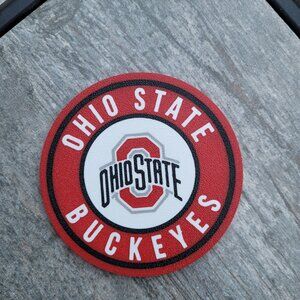 You will receive four (4) Ohio Buckeyes Coasters, 3D printed fan art, each measuring 95mm in diameter and 4mm thick and one (1) small football shaped display stand.