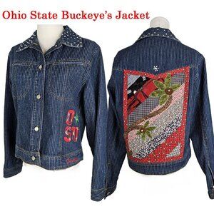 Ohio State Buckeyes Denim Jacket Small Embroidered Patchwork Blue
