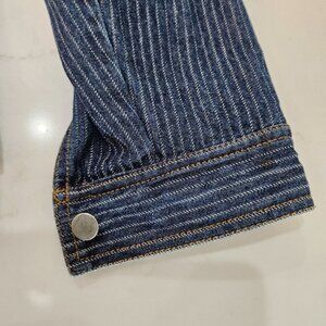 This vintage denim jacket evokes a timeless charm with its intricate OSU embroidery and patchwork design. Featuring a studded collar, it combines classic craftsmanship with bold details. A true statement piece for a retro wardrobe, especially a Ohio State Buckeye's fan!