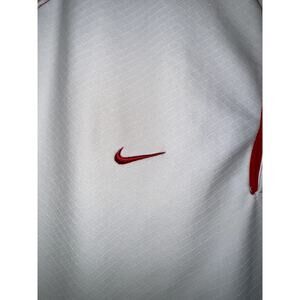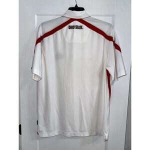 Ohio State Buckeyes Nike Dri-fit golf polo white and red. top button on polo is a silver nike button. Good condition no holes or stains