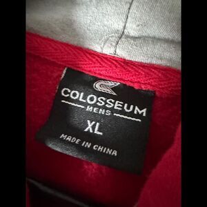 scarlet red, university hoodie, collegiate, embroidered logo, sporty, oversize, fleece, casual, athletic style, campus wear