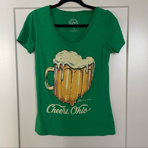 Where are all of my Ohio people at?! This T-shirt is so cute and perfect for Saint Patrick’s day! it was designed and created by a local apparel shop in Cleveland, OH. This item has been worn twice and is in great condition! Machine washable; will ship right away, given that St. Patrick’s Day is just around the corner! 🍀 Cheers, Ohio! 🍻
