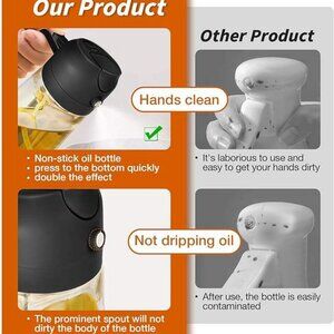 Dual Dispensing Convenience: This oil bottles for kitchen offers both pouring and spraying capabilities, allowing you to switch between the two with ease. It's a space-efficient solution that keeps your kitchen clean and organized.