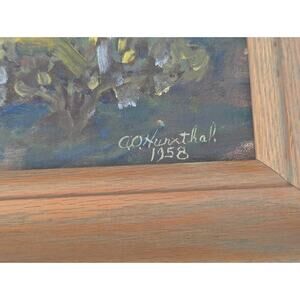 Landscape painting on board, signed by the artist, unable to identify the artist. Seems to be signed A. O. Hurxthal.