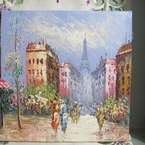 Oil Painting Paris, France ~ Eiffel Tower ~ French Street Scene ~ Signed Davis