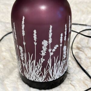 Pretty plum with white flowers. This is a water plus scented oil diffuser. Works great.