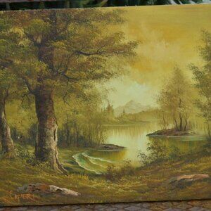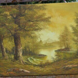 Oil on Canvas By Italian Artist: I. Cafieri Vintage 1990s Portraying: Forest