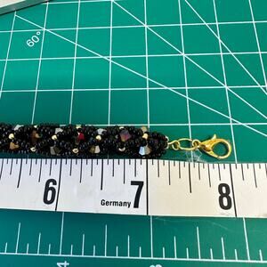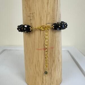 New OilNana Black & Gold Handmade Beaded Bracelet Crystal Boho Luxe Adjustable 8-11”.