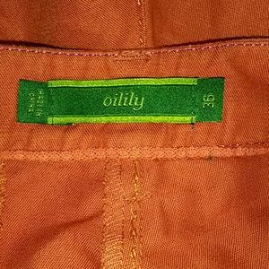 Oilily shorts in excellent condition, orange in color, double button and zip front closure, pink and orange decorative stitching at seam, two side pockets and one back pocket, gorgeous! Tag Size 36 - European size- USA size 6