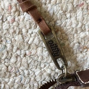 Oilily tote with front pocket. Embroidered birds/design on pocket and detail stitching on top. Inner zip pocket. Approximately 17” wide and 15” tall. Handle drop approximately 9”. Unique and functional!