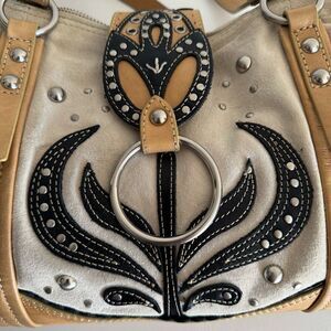 Oilily Y2K Leather & Suede Floral Design Shoulder Bag Tan & Black