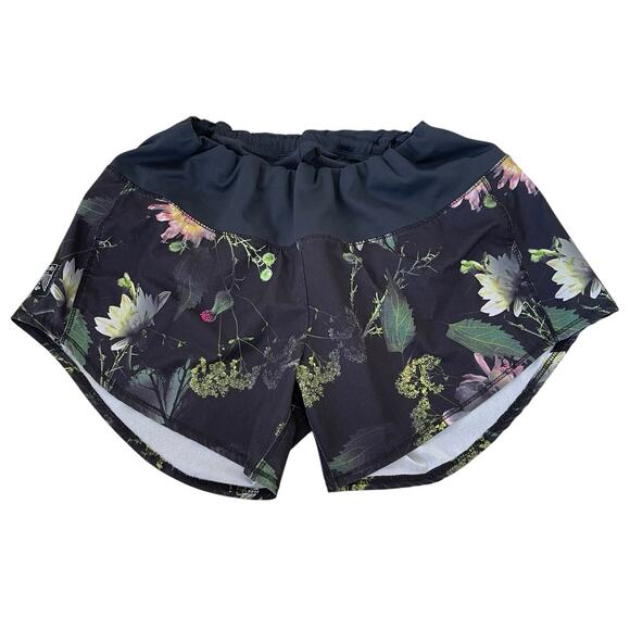 Oiselle Athletic Shorts Black Photo Realistic Floral Print Size 4