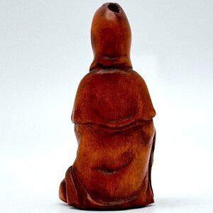 Ojime Bead Netsuke Kuan Yin Guanyin Quan Yin Hand-Carved Boxwood Signed Figurine