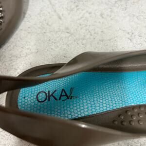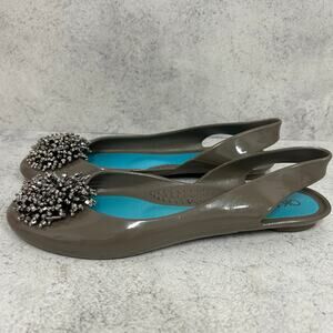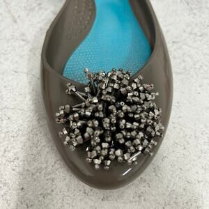 Oka B Ballet Flat Shoes Jellies Slip On Green Jewel Bead Eco Friendly Size 6