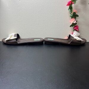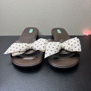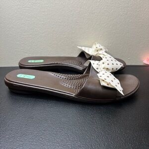 🌹Oka-B Brown Slip On Sandals with Polka Dot Bow Detail Womens 8-9 Casual