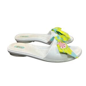 Oka-B Slide Sandals Slip-on White Green Pink Bows Size M 7-8