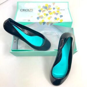 Oka-B TAYLOR Licorice Black Patent Flexible Rubber Arch Support Ballet Flats
