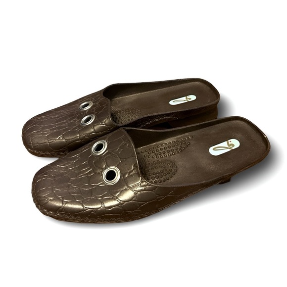 Oka-b. Women's Brown Crocodile Pattern Slip-On Mules Size M (6.5-7.5)
