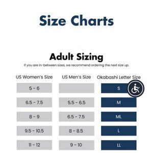 Okabashi sandals. Colors are black with gray/silver straps. Thong style. Size Medium, Size chart is in photos from website.