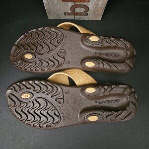 Gold/Brown Flip Flop-style Sandals from Okabashi - massaging insole, ergonomic foot-bed, superior arch support - like new!