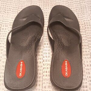 Okabashi women's black low wedge heel flip flops Made in USA sz L / 9.5 - 10.5. Pre-owned.