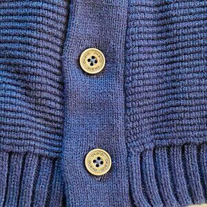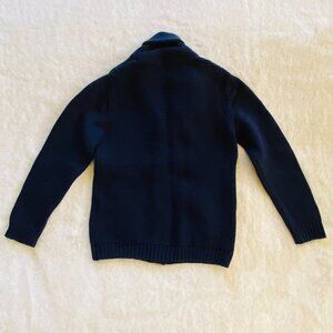 Okaidi Navy Cardigan Sweater Boy's Size 6 Thick Ribbed Pockets Shawl Collar
