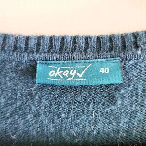 Okay Teal V Neck Pullover Sweater, Large