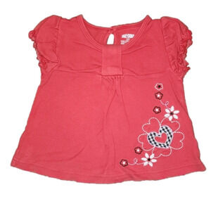 Okie DOKIE Red Short Sleeve Tee with Flowers Detail