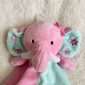 Okie Dokie Elephant Hugs 14” Lovey Rattle Pink Teal Security Blanket Baby Soft