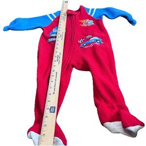 Okie Dokie Fleece Red Sleeper Boys Size 18m Zip Up Warm Footed Pajamas Race Car
