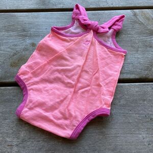 Okie Dokie Girls Bodysuit Sz 3 Mo Pink Orange Glittery Flamingo Knot Back NEW