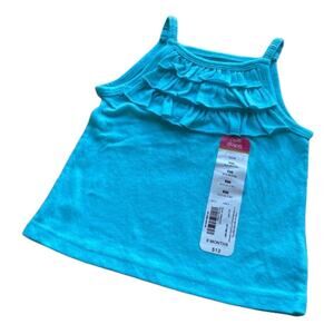 Okie Dokie Girls Tank Top Size 9 Months Blue Curacao Ruffle Neck NEW