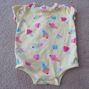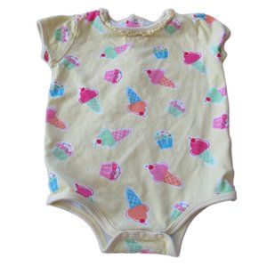 Okie Dokie Baby Girl Bodysuit Sz 3-6M Yellow Short Sleeve Ice Cream Cones Infant