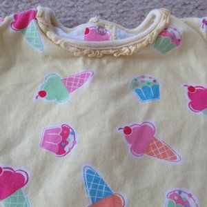Okie Dokie One Piece Onesie Girls Size 3-6M Yellow Short Sleeve Ice Cream Cone