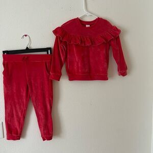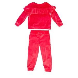 Okie Dokie Red Soft Velvet Matching Jogger Ruffle Sweatsuit Outfit Set 5T