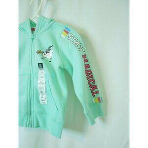 Okie Dokie Toddler Girl Pastel Green Unicorn Stay Magical Zip Up Sweater 18M