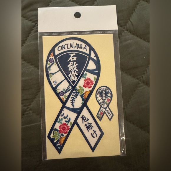 Decorative Okinawa ribbon stickers with floral design. Features vibrant colors and intricate details.