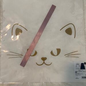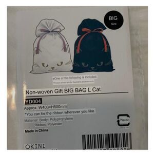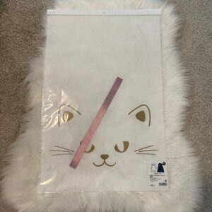 Okini Non Woven Gift Bag. Large. White/Gold with Pink Ribbon. Cat Print. 1 Piece.. Last Photo is a Google Translate from Japanese to English. Please feel free to google translate yourself too. New without tags but in original packaging.