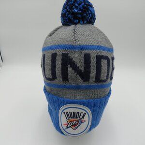 Oklahoma City Thunder Hat Cap Snap Back Blue Gray NBA Basketball Pom Beanie Mens